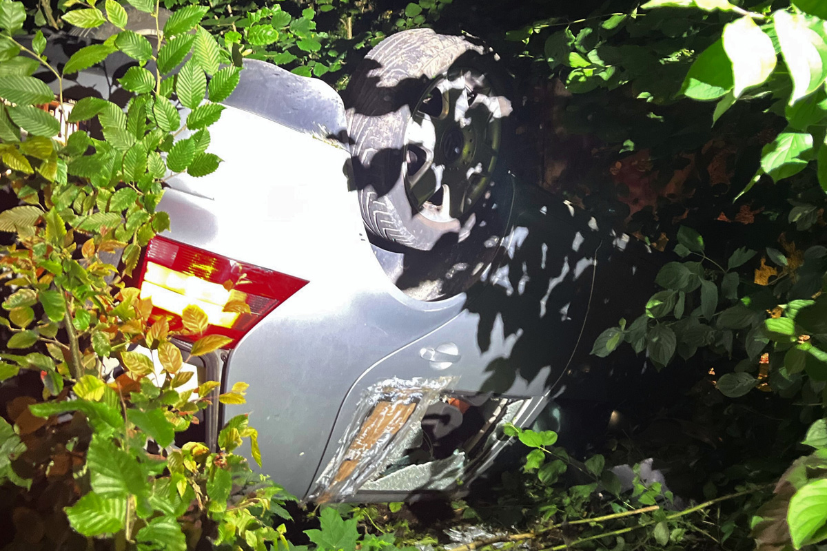 In der Nacht zu Donnerstag, 24.Juli 2025, ist ein nicht zugelassener VW Golf nach einer Verfolgungsfahrt in Siegen verunfallt und auf dem Dach gelandet. Zwei Männer flüchteten zunächst zu Fuß, konnten aber kurz darauf festgenommen werden. Keiner der beiden verfügte über eine gültige Fahrerlaubnis, einer stand zudem unter Drogeneinfluss.