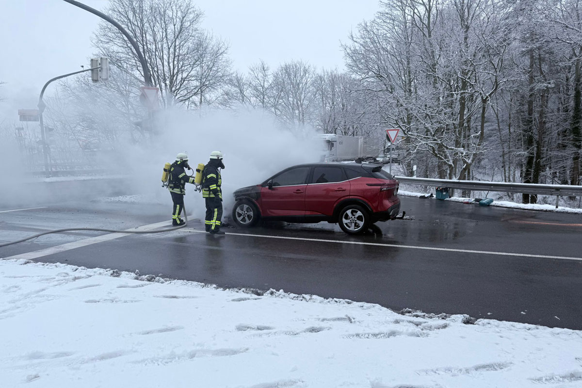 Am 27.01.2026 gegen 10.40 Uhr geriet ein Nissan Qashqai am Dienstagvormittag aus ungeklärter Ursache auf der Stader Straße im Kreuzungsbereich zur A1 in Brand.