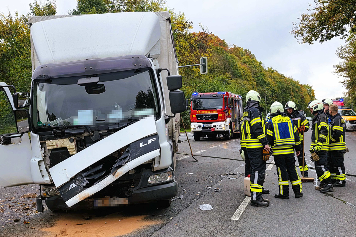 Am Freitagmittag, 17.10.2025, kam es in Sprockhövel (NW) zu einem Unfall zwischen einem Lkw und einem E-Fahrzeug. Der Pkw wurde in eine Böschung geschleudert, eine Person kam ins Krankenhaus. Ein Rotlichtverstoß steht im Raum.