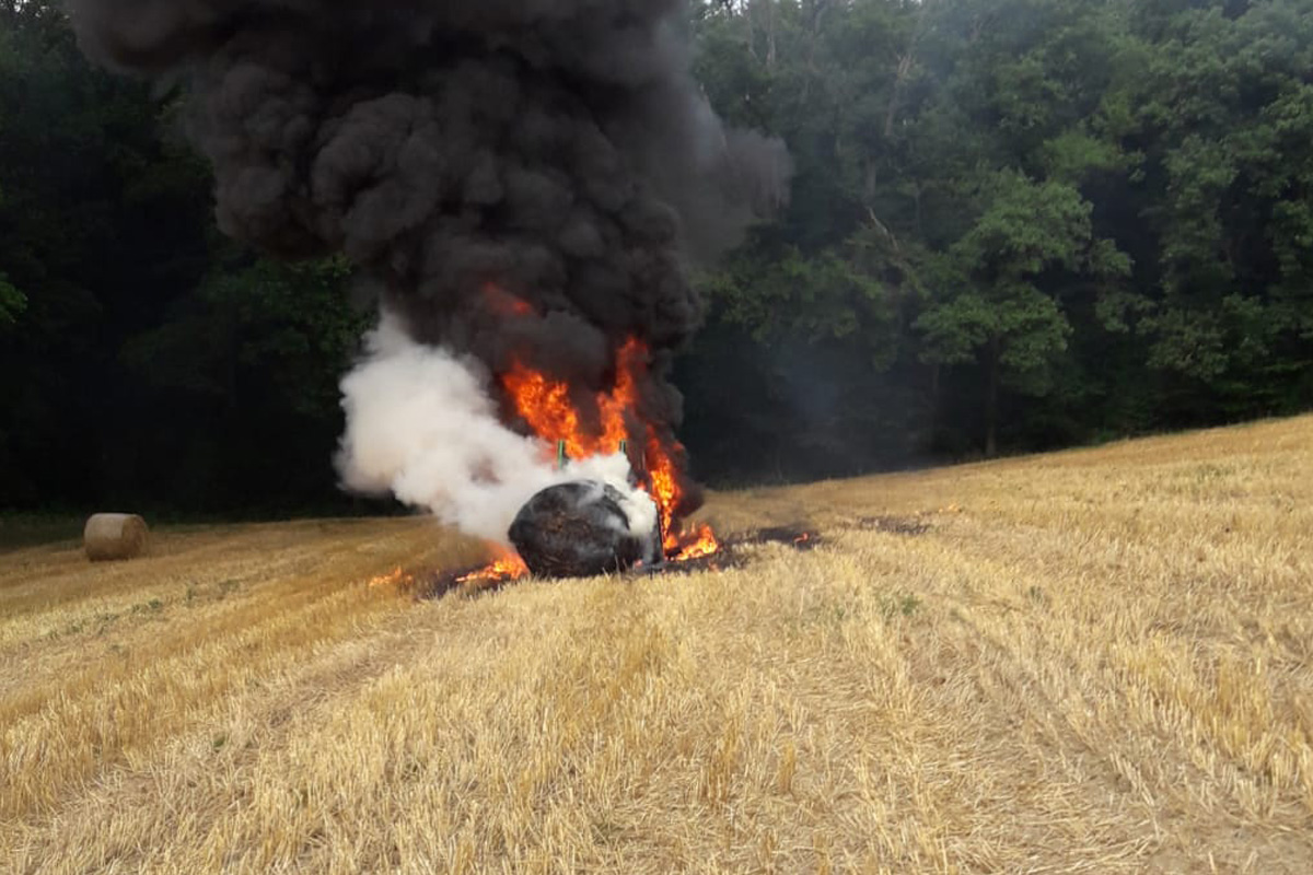 Am Samstag, 19. Juli 2025, geriet auf einem Feld bei Sprockhövel ein Traktor in Brand. Die Feuerwehr konnte ein Übergreifen der Flammen auf ein nahegelegenes Waldstück verhindern.
