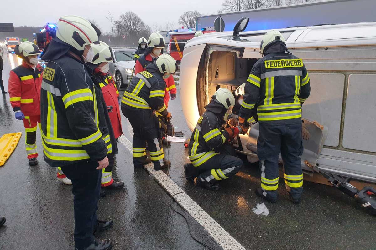 Um den Autofahrer letztendlich aus dem Fahrzeug zu retten, musste die Feuerwehr einen Teil des Daches des Kleintransporter entfernen. Anschließend konnte der Patient dem Rettungsdienst zur weiteren Versorgung übergeben werden.