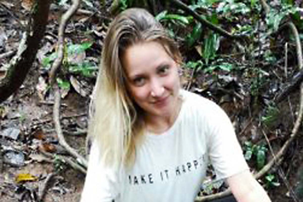 Die junge Frau ist 26 Jahre alt, 175cm groß, schlank, ca. 65 kg, dunkelblonde an den Spitzen blonde Haare, sie führt einen roten Trekking-Rucksack der Marke Osprey und vermutlich ein graues Zelt mit.