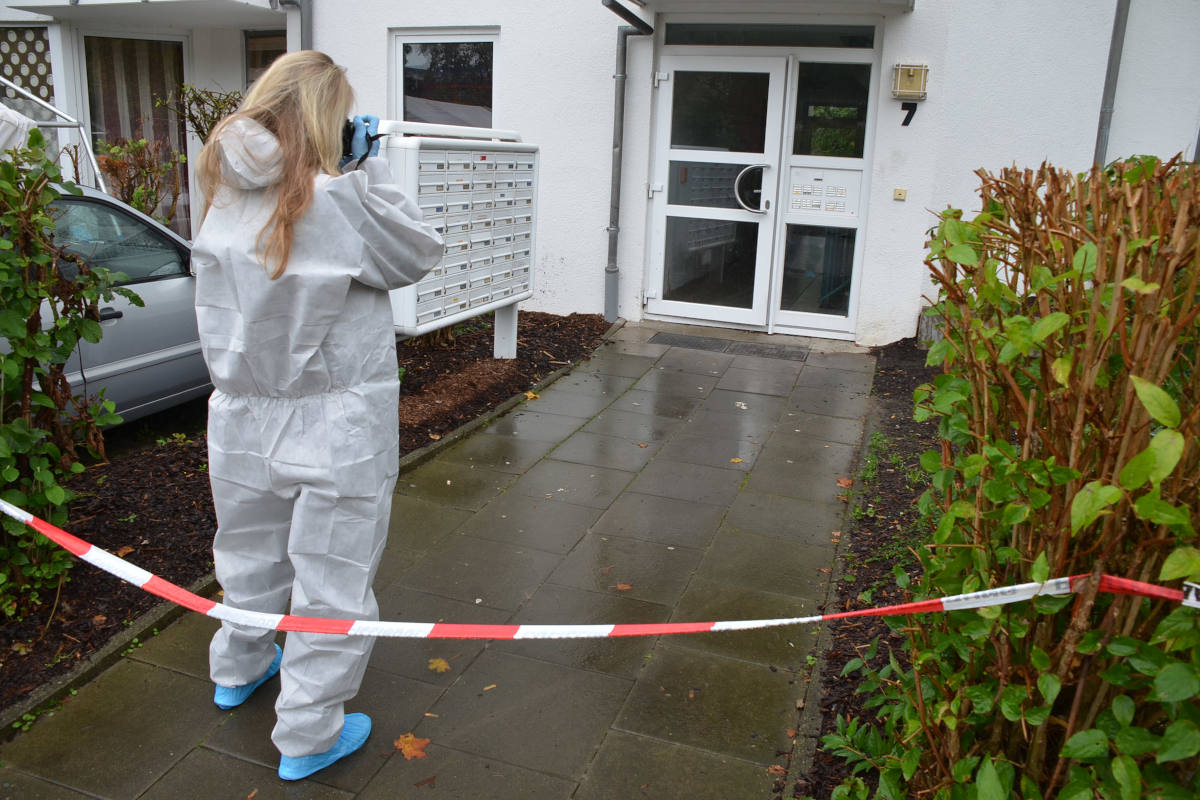 Tatortermittler, Polizeibeamte und Erkennungsdienstmitarbeiter aus Stade und Rotenburg sicherten die Spuren am Tatort und in und vor dem Mehrfamilienhaus und befragten die Nachbarn.