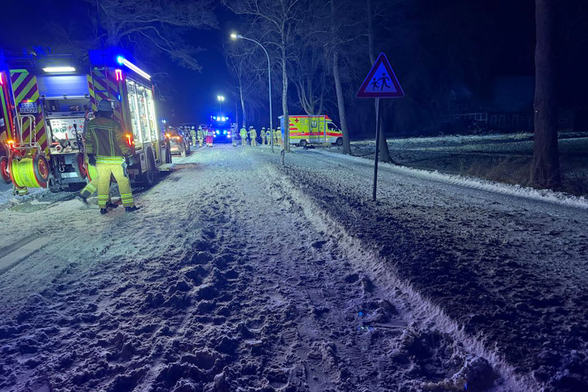 Am Dienstagabend, 03.02.2026, kam es auf der Kreisstraße 27 in der Gemarkung Stade zu einem schweren Verkehrsunfall. Ein Pkw geriet ins Schleudern und prallte frontal mit einem entgegenkommenden Kleinbus zusammen. Sechs Personen wurden verletzt.
