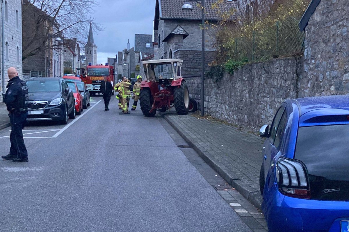 Der Traktor war nach dem Unfall nicht mehr fahrbereit. Die Straße „Alt Breinig“ musste im Abschnitt zwischen Buttergasse und Eschenweg für etwa anderthalb Stunden voll gesperrt werden.