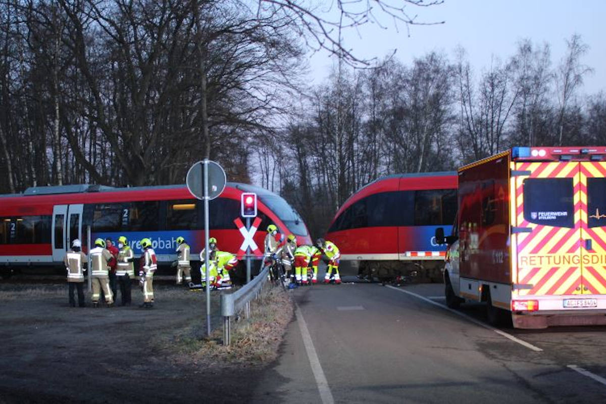 Nach bisherigen Erkenntnissen hatte der 33-jährige Mann mit seinem Fahrrad versucht, den Bahnübergang trotz geschlossener Schranken zu passieren. Dabei kollidierte er mit der vorbeifahrenden Euregiobahn. Ein Rettungswagen brachte den Mann mit lebensgefährlichen Verletzungen ins Krankenhaus. Der Lokführer erlitt einen Schock. Zum Zeitpunkt des Unfalls befanden sich keine Fahrgäste im Zug.
