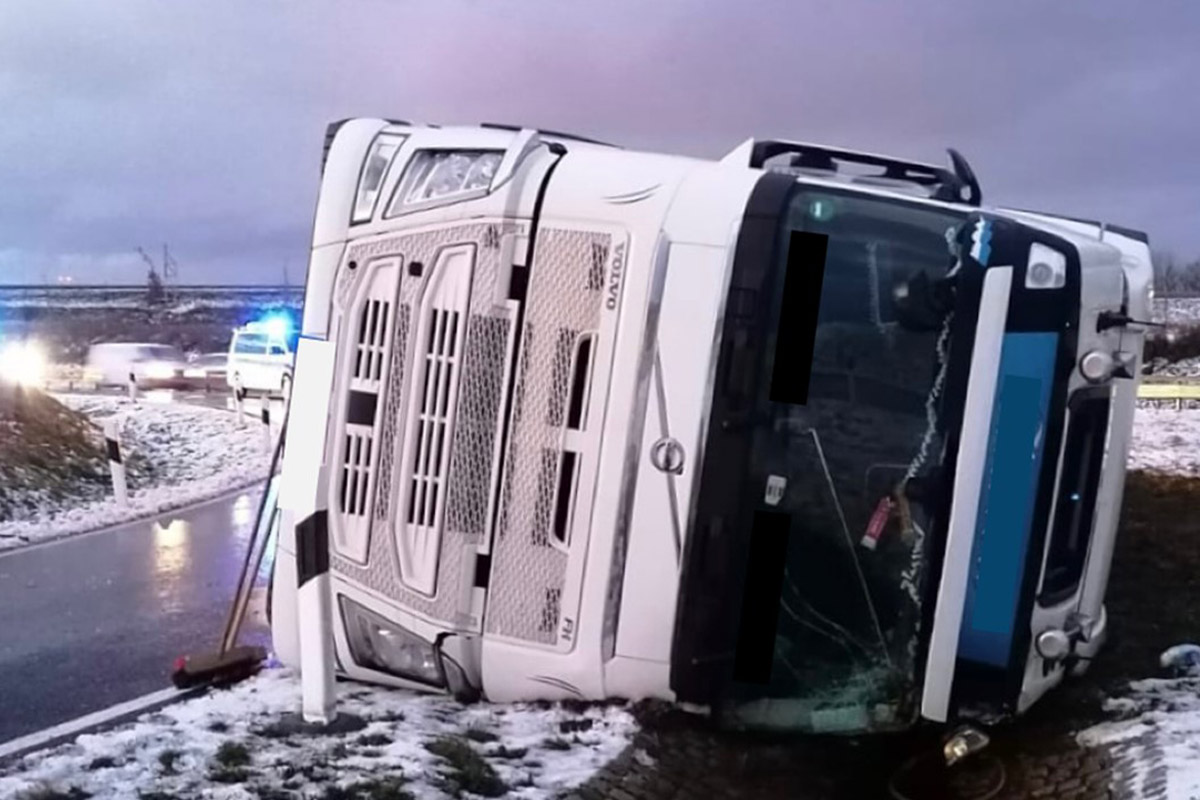 Die Bergung des LKWs, der Zuckerrübensaft geladen hatte, dauert noch mehrere Stunden. Hierzu kommt eine Spezialfirma zum Einsatz. Der Sachschaden wird auf mindestens 40.000 Euro geschätzt.