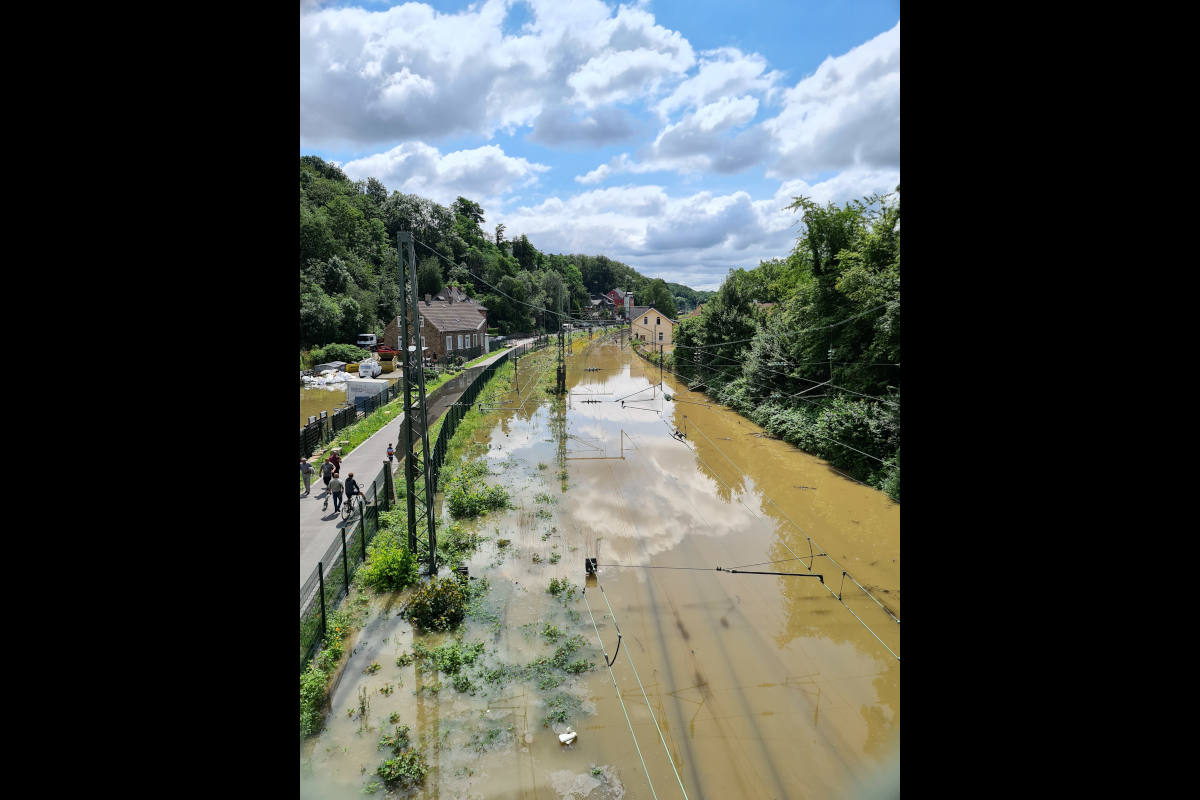 Überflutete Bahnstrecke in Bochum (Bildquelle: Feuerwehr Bochum)