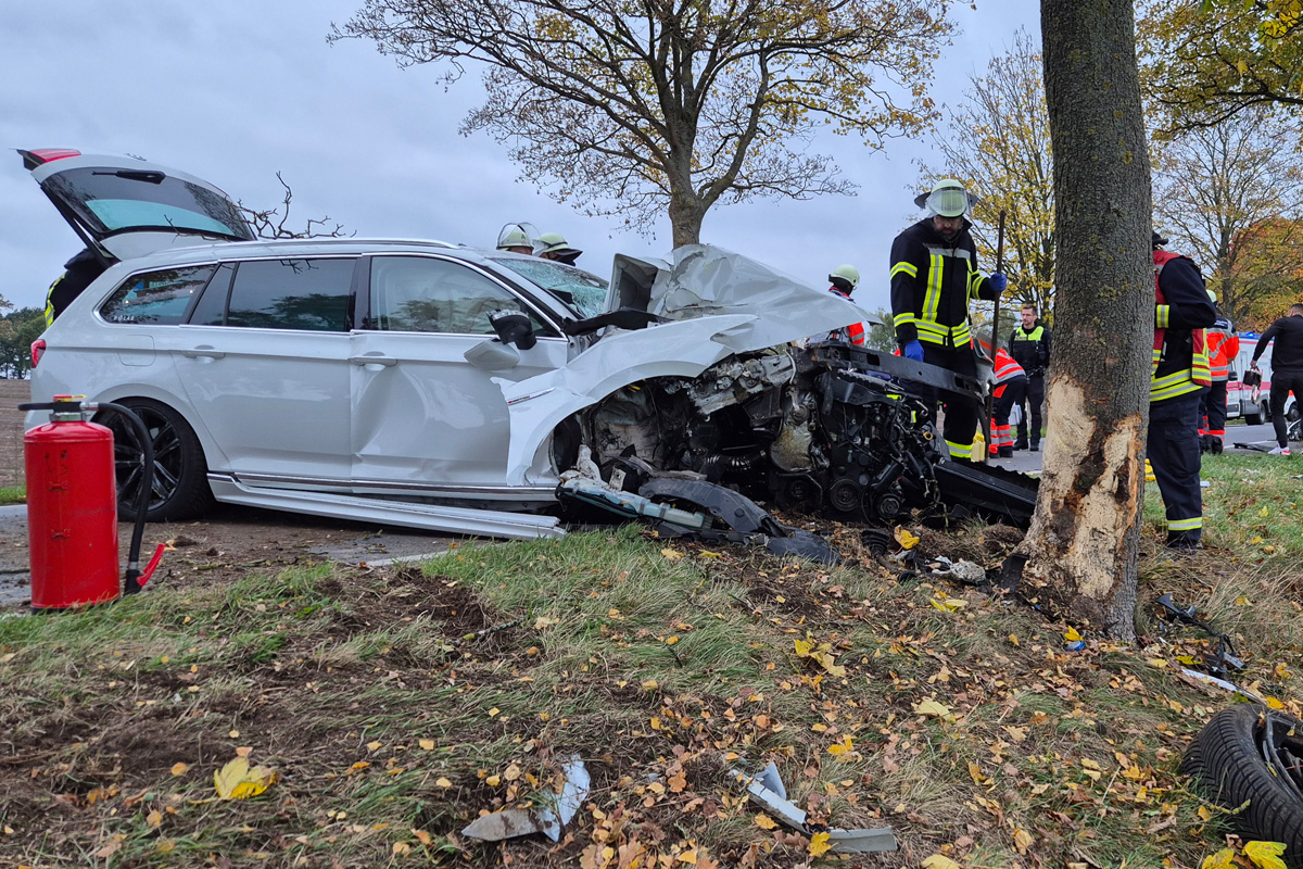 Am Samstagnachmittag, 11.10.2025, wurden bei einem Unfall auf der L240 bei Südheide (NI) vier Menschen schwer verletzt, darunter zwei Kinder. Ein VW Passat kam nach einem missglückten Überholversuch von der Straße ab und prallte gegen einen Baum.