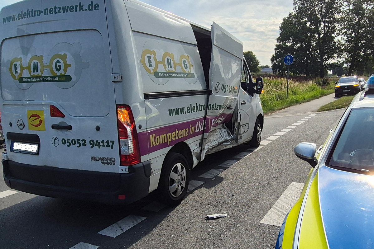 In Beckedorf (Südheide) kam es am Dienstagabend (12.8.2025) zu einem Verkehrsunfall mit drei beteiligten Fahrzeugen. Ein VW Golf prallte in einen Transporter, der daraufhin gegen einen Audi geschleudert wurde.