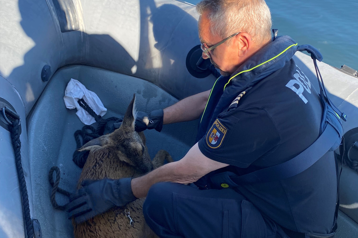 Wasserschutzpolizei rettet erschöpftes Reh aus Hafenbecken