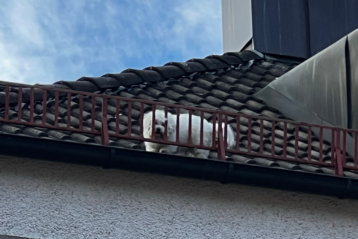 Feuerwehr rettet herrenlosen Hund von Dach