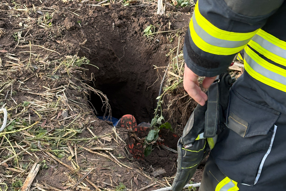 Feuerwehr rettet Schaf aus 3 Meter tiefem Erdloch
