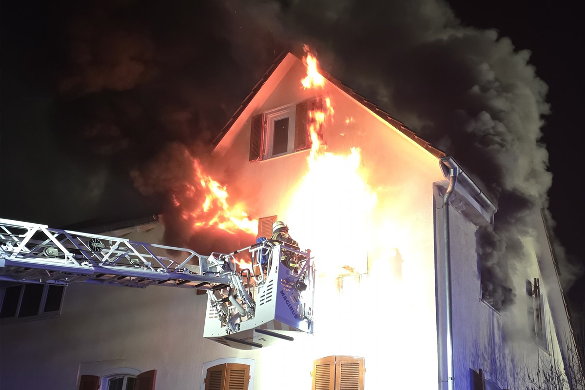 Beim Eintreffen der Feuerwehr stellten die Einsatzkräfte im zweiten Obergeschoss des Hauses eine starke Rauch‑ und Flammenentwicklung fest.