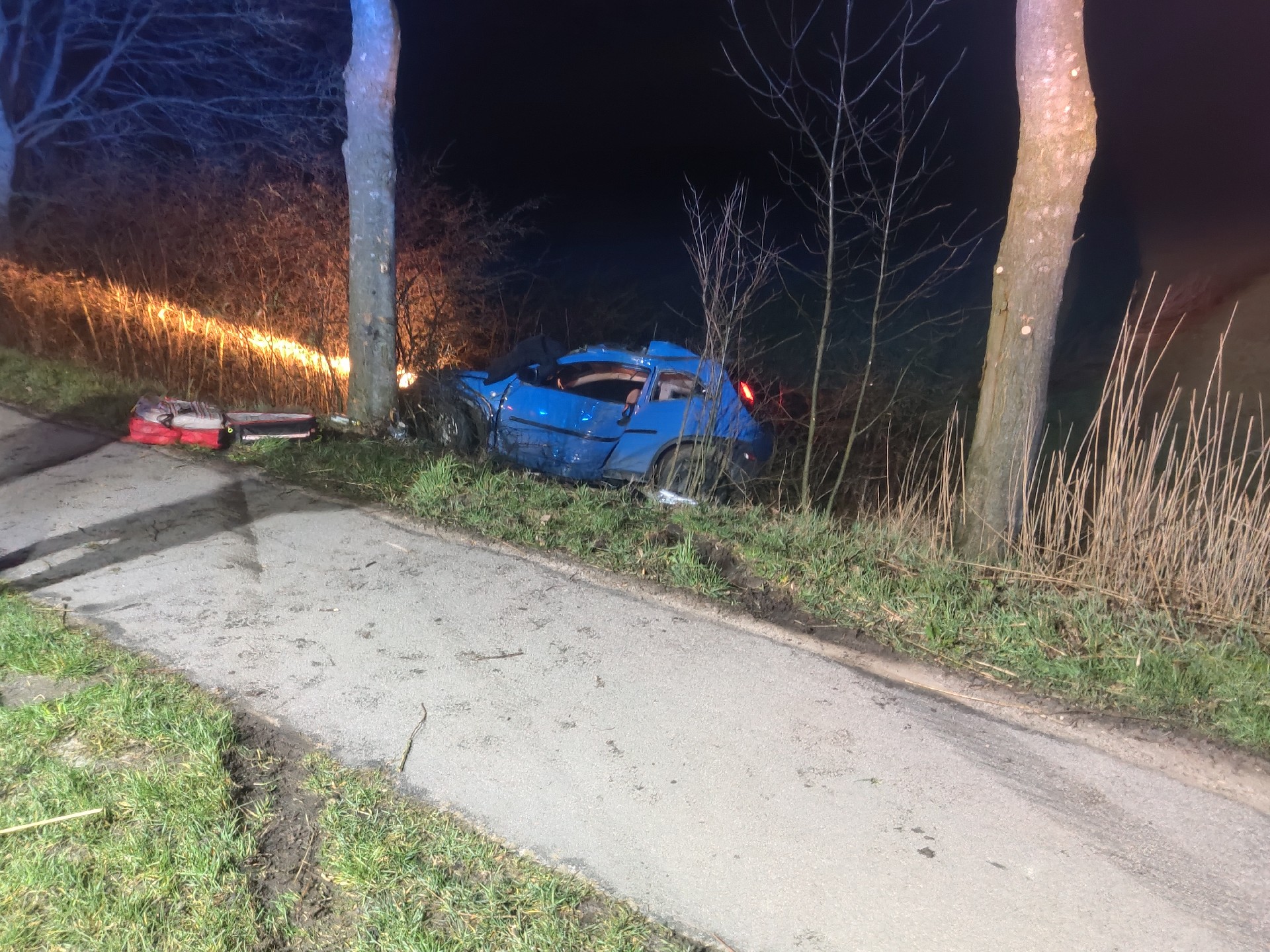 Auf gerader Strecke von der Fahrbahn abgekommen und gegen einen Baum geprallt (Bildquelle: Polizeiinspektion Wilhelmshaven/Friesland)