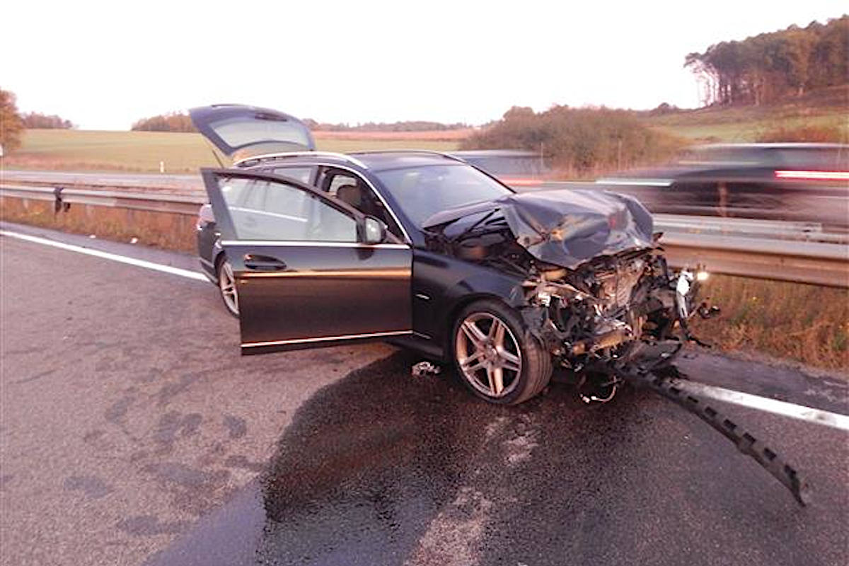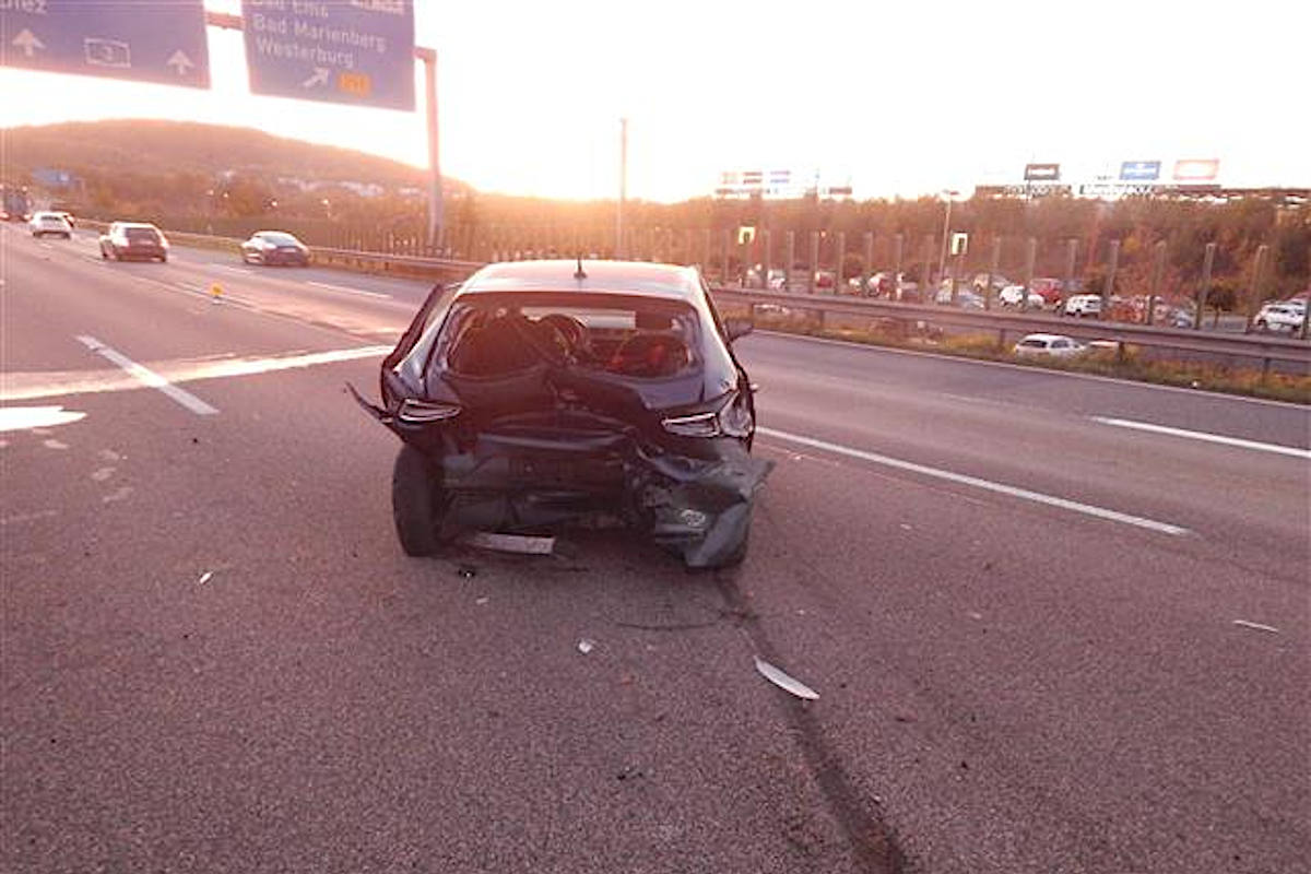 Ein 30 jähriger Fahrzeugführer aus dem benachbarten Hessen war mit einem PKW Mercedes Benz auf der linken Spur der A 3 unterwegs, als er aufgrund von Sekundenschlaf auf den mittleren Fahrstreifen geriet und einem dort fahrenden Seat Ibiza hinten auffuhr. Der Seat des 42 jährigen Mannes aus Trier wurde dabei erheblich beschädigt und kam quer über den linken und mittleren Fahrstreifen zum Stehen.