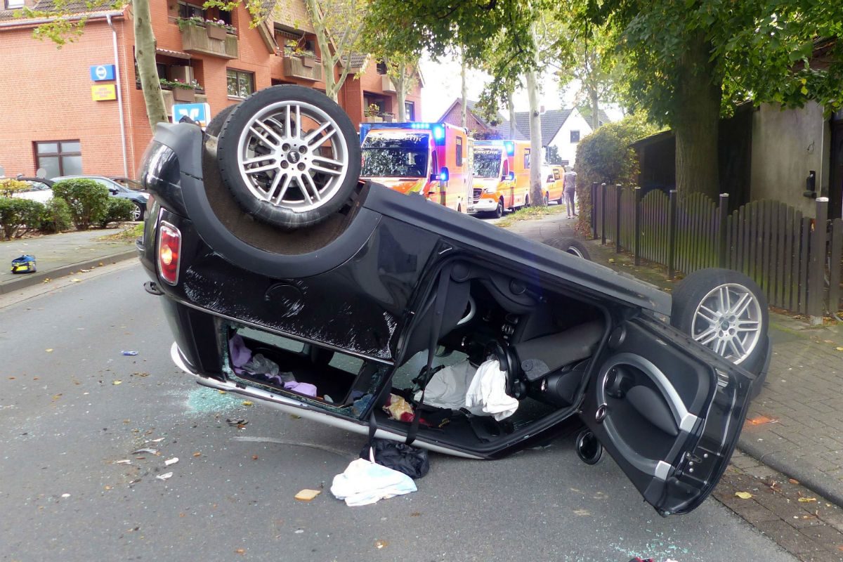 Unfall Bad Oeynhausen - 73-Jährige bleibt mit dem Mini nach Unfall auf Dach liegen.