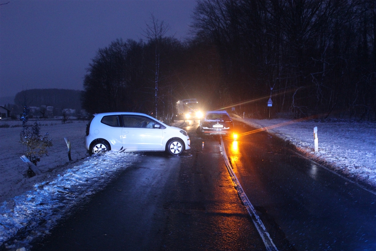 Gestern (15.01.) gegen 07:00 Uhr kam es auf der Bechener Straße (L 289) zu einem Frontalzusammenstoß zweier Autos, bei dem drei Personen leicht verletzt wurden.