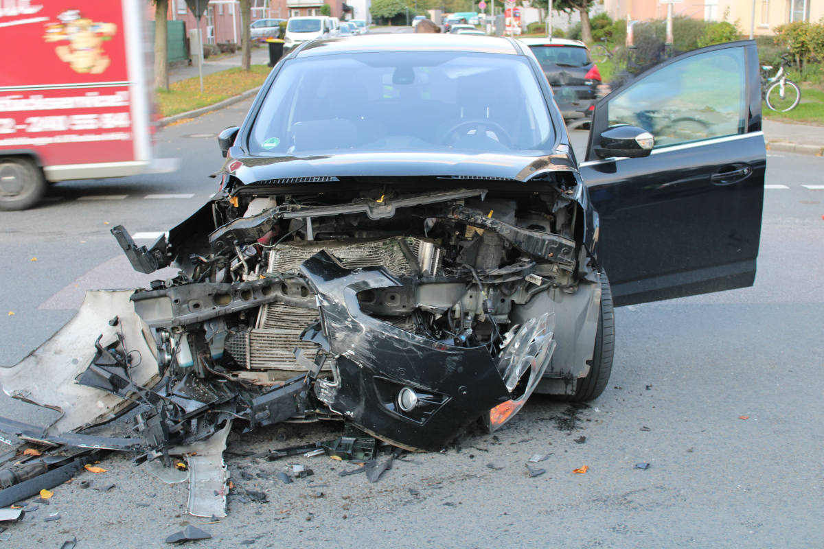 Zwei verletzte Autofahrer und ein Sachschaden von circa 23000 Euro sind das Ergebnis eines Verkehrsunfalles, der sich Donnerstagmorgen auf der Wiesenstraße ereignete.