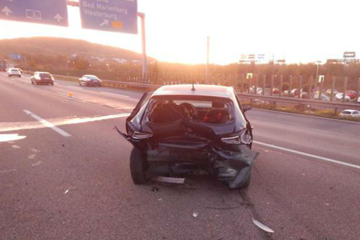 Ein 30 jähriger Fahrzeugführer aus dem benachbarten Hessen war mit einem PKW Mercedes Benz auf der linken Spur der A 3 unterwegs, als er aufgrund von Sekundenschlaf auf den mittleren Fahrstreifen geriet und einem dort fahrenden Seat Ibiza hinten auffuhr.