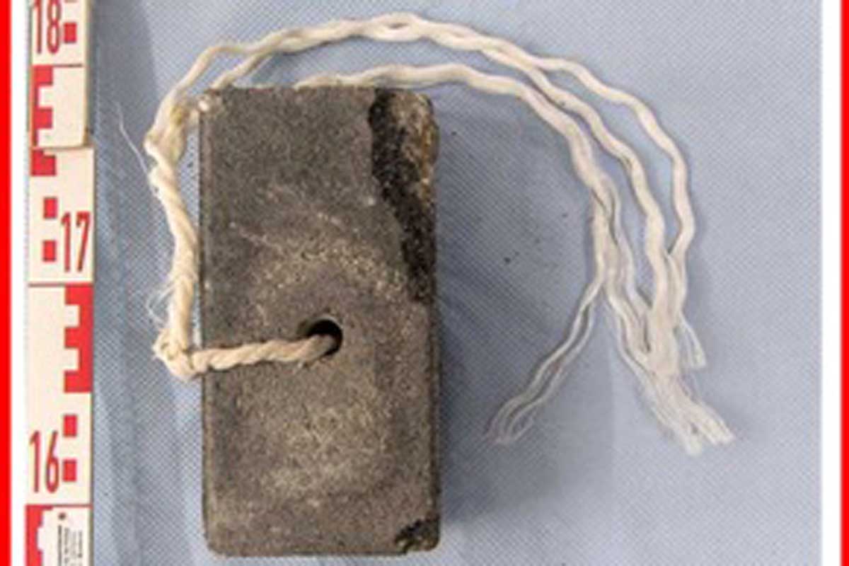 Einer der sichergestellten Plastersteine in der polizeilichen Spurensicherung (Bildquelle: Polizei Mettmann)