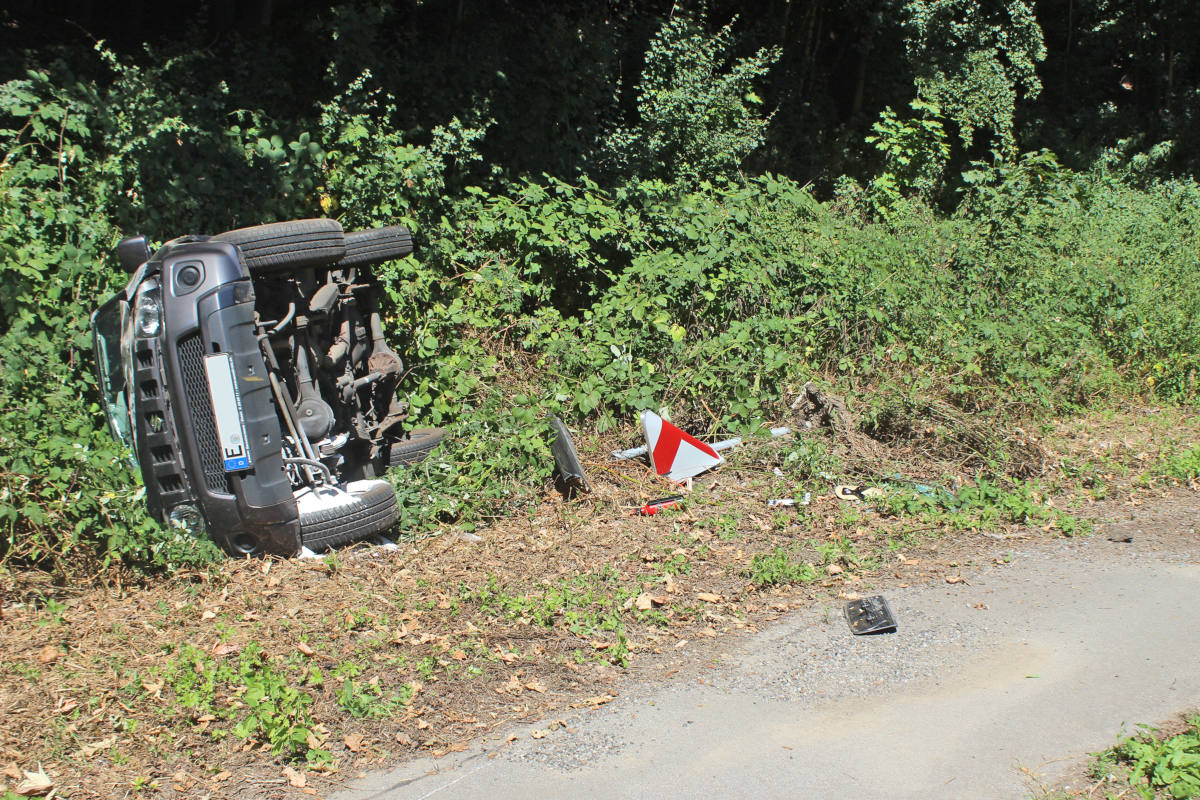 Mit PKW aus scharfer Kurve getragen und umgekippt