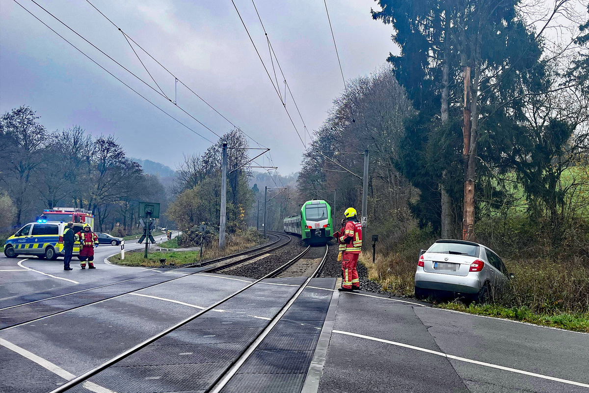 Am Donnerstagvormittag, 20.11.2025, wurde in Velbert (NW) ein Auto auf einem Bahnübergang von einem Zug erfasst. Die 78‑jährige Fahrerin blieb ebenso unverletzt wie alle 60 Zugpassagiere. Die Polizei ermittelt zum Unfallhergang.