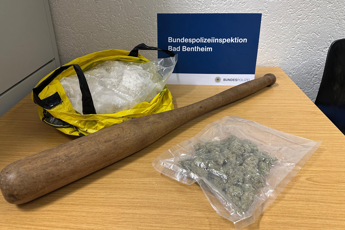 Beamte stoppten ein aus den Niederlanden kommendes Auto mit polnischem Kennzeichen. Bei der Durchsuchung entdeckten sie zunächst einen Baseballschläger sowie kleinere Mengen Marihuana.