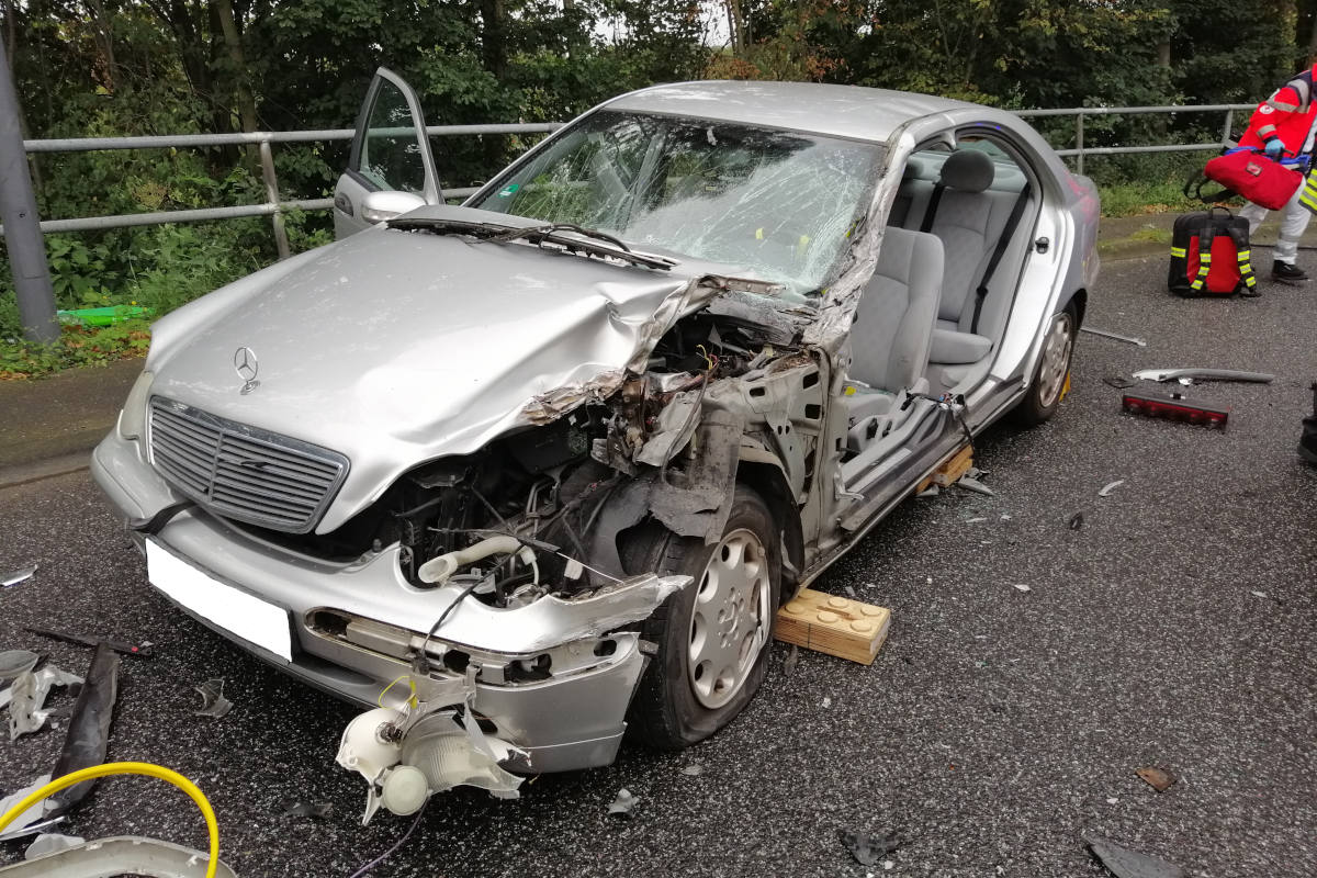 In einer dortigen langgezogenen Rechtskurve scherte der Anhänger des Lkw aus bislang ungeklärter Ursache auf die Gegenfahrbahn aus und kollidierte mit einem entgegenkommenden Pkw. Der 51-jährige Wormser Fahrer des Pkw, der sich alleine im Fahrzeug befand, wurde durch die Wucht des Aufpralls eingeklemmt und musste durch die Feuerwehr befreit werden.