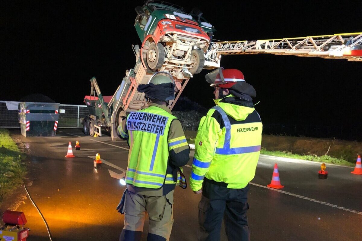 Voerde NW - LKW-Absetzkipper kippte um