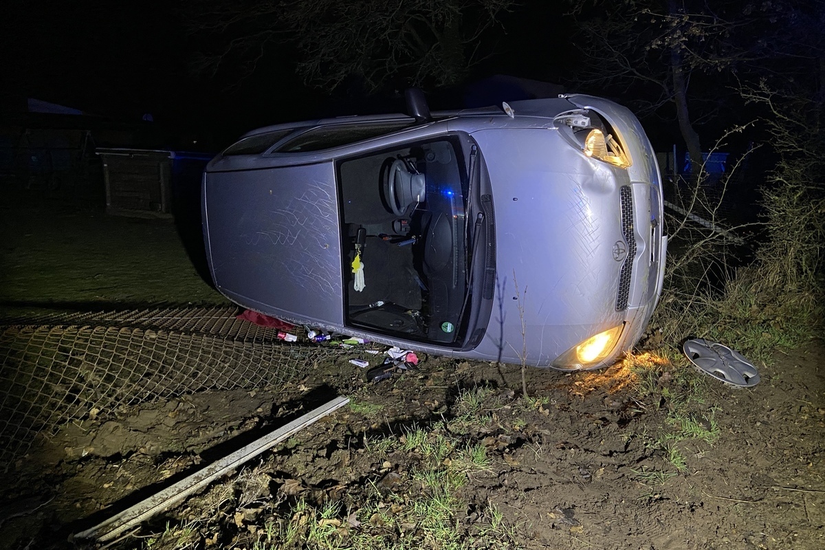Nachdem die junge Frau aus bisher unbekanntem Grund auf gerade Strecke zunächst mit dem rechten Vorderreifen minimal nach rechts von der Fahrbahn abgekommen war, verlor sie offensichtlich nach einer Gegenlenkbewegung die Kontrolle über ihr Fahrzeug und fuhr danach quer über die Gegenfahrspur. Nach dem Kontakt mit dem dortigen hohen Bordstein kippte der Pkw Toyota auf die rechte Seite, streifte dabei einen Baum und durchschlug einen Maschendrahtzaun.