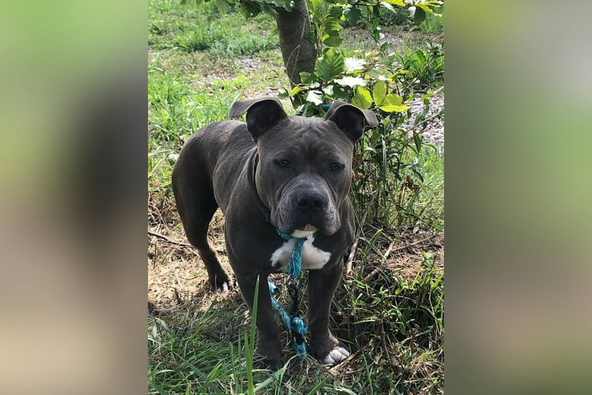 Bild des ausgesetzten Pitbullterriers aus Waldshut-Tiengen (Bildquelle: Polizeipräsidium Freiburg)