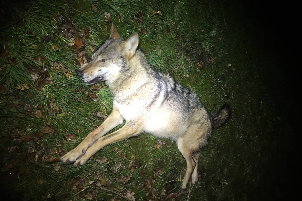 Wolf auf der B209 von Pkw erfasst. (Bildquelle: Polizeiinspektion Heidekreis)