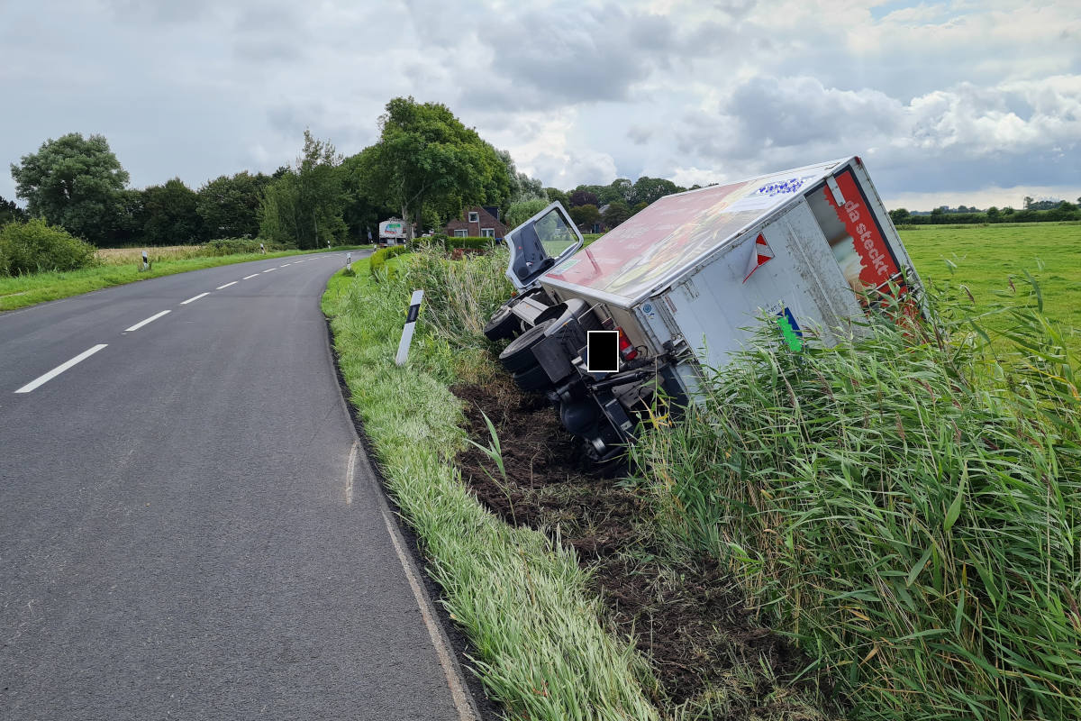 Am Vormittag des 20.08.2021 kam kurz nach 10:00 Uhr ein 49-jähriger Lkw-Fahrer aufgrund von Unaufmerksamkeit nach rechts von der Fahrbahn ab, geriet zunächst in die weiche Berme und stürzte seitlich in den rechten Straßenseitengraben.