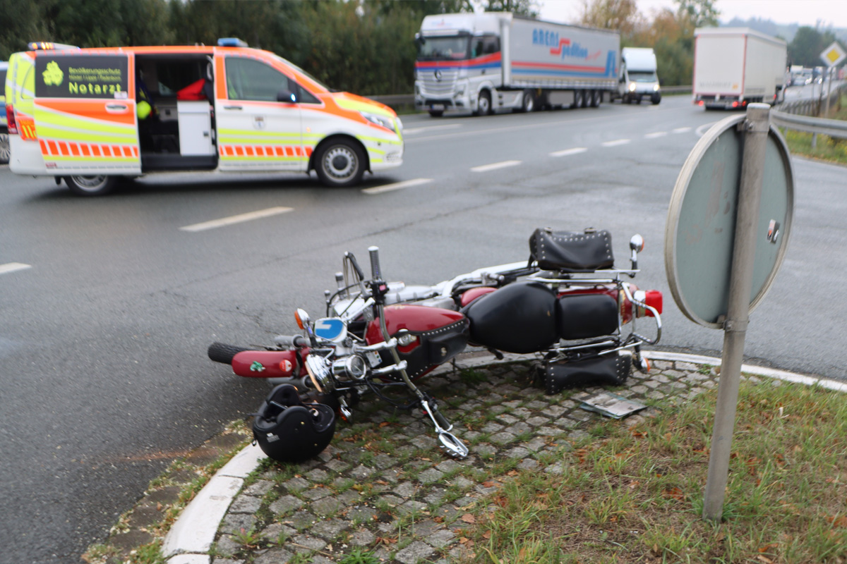 Ein Pkw-Fahrer nahm dem Biker die Vorfahrt. (Bildquelle: Kreispolizeibehörde Höxter)