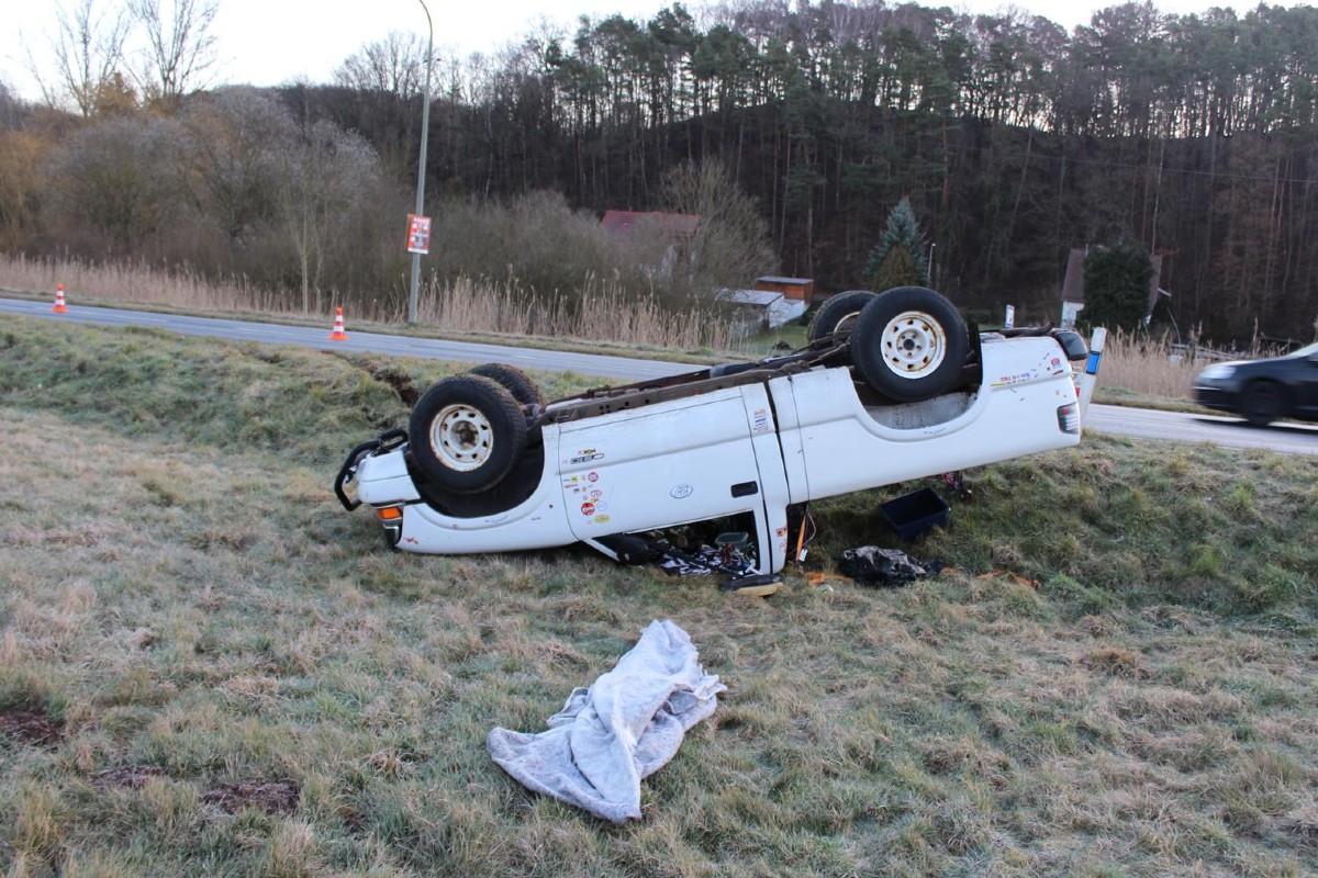 Hierbei überschlug sich das Fahrzeug und kam auf dem
