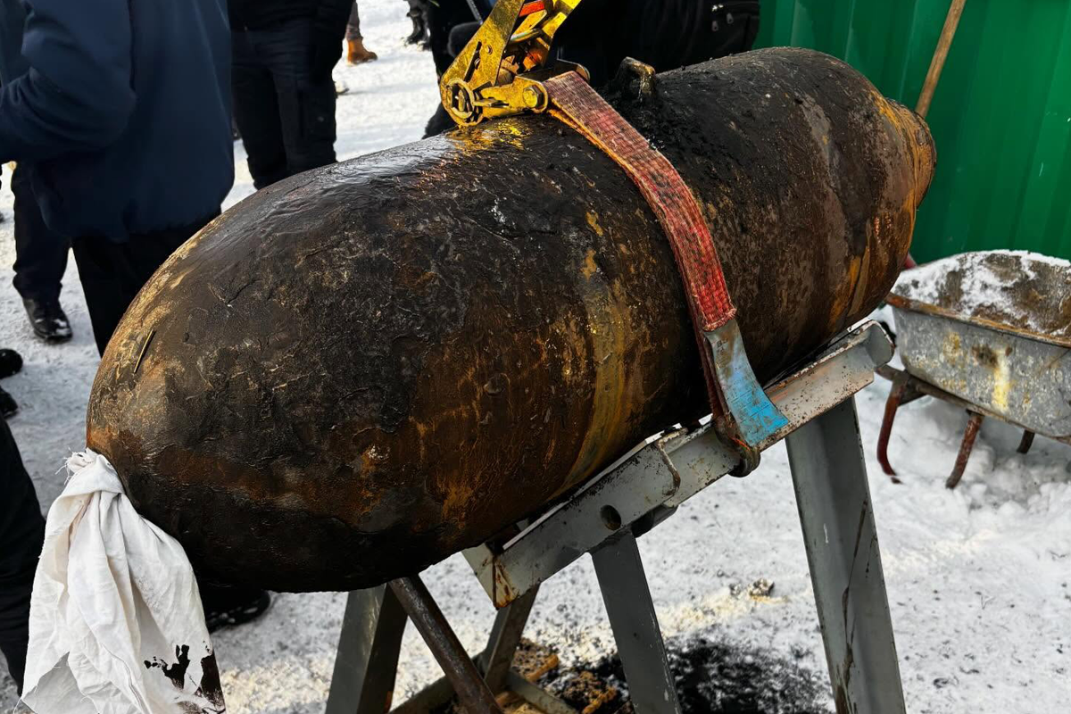Die erfolgreich entschärfte Fliegerbombe aus dem Zweiten Weltkrieg. (Bildquelle: Feuerwehr Stadt Wedel)
