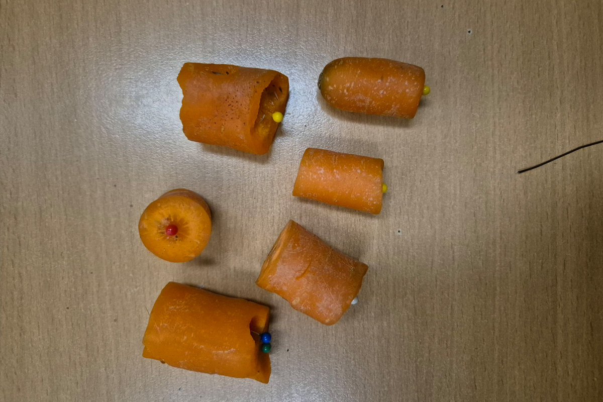 Daraufhin wurden bei einer Absuche insgesamt sechs Karottenstücke, die mit Stecknadeln bestückt waren, am Toreingang der Koppel und auf der Weide verteilt festgestellt.