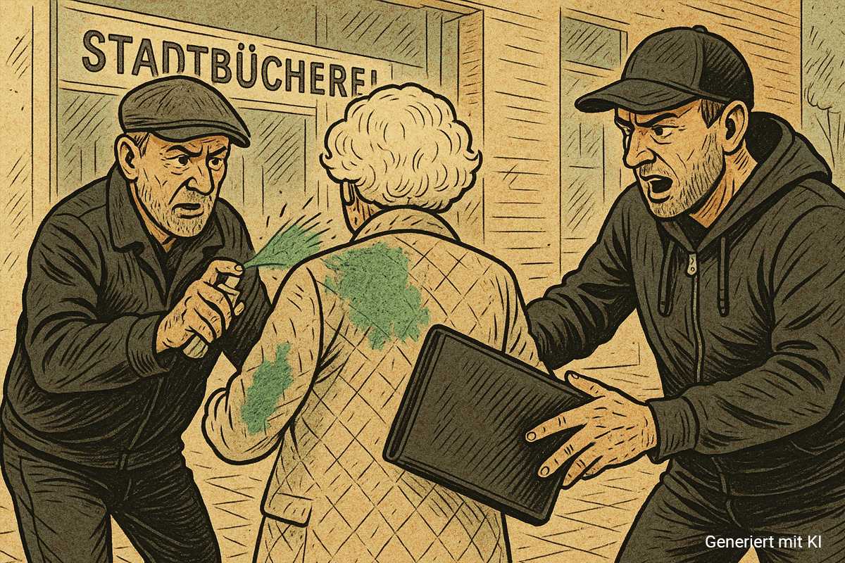In Wedel (SH) wurde eine 88-Jährige am Dienstag, 15. Juli 2025, in der Straße Rosengarten Opfer eines Trickdiebstahls. Zwei Männer lenkten sie mit einer Farbsprühattacke ab und stahlen ihre Dokumentenmappe mit 1.000 Euro Bargeld. Die Polizei bittet um Hinweise.