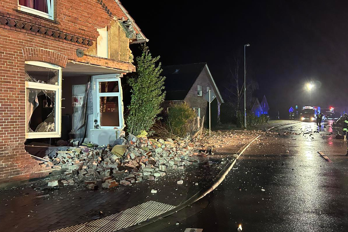 In der Nacht zu Samstag, 21.02.2026, ist ein 23-jähriger Autofahrer in Weener (NI) unter Alkoholeinfluss von der Fahrbahn abgekommen und in ein Wohnhaus geprallt. Teile der Außenwand stürzten ein, das Gebäude gilt als einsturzgefährdet und ist unbewohnbar. Der Fahrer wurde verletzt.