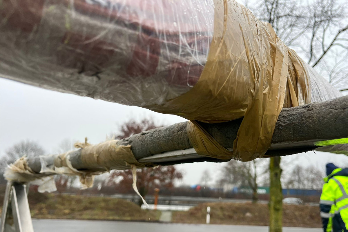 Am 13.02.2026 kontrollierte die Polizei auf der A31 bei Weener (NI) einen Pritschenwagen mit zwei Segelmasten. Die Ladung war lediglich mit Klebeband gesichert und wies einen unzulässigen Überhang auf. Die Weiterfahrt wurde untersagt und ein Verfahren eingeleitet.