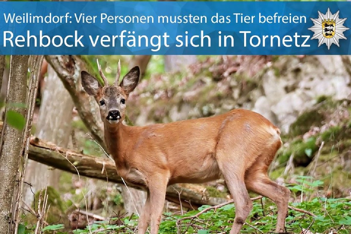 Die Polizei Stuttgart wurde gestern Mittag nach Weilimdorf gerufen, weil sich dort ein junger Rehbock im Netz eines Fußballtores verfangen hatte. Da sich das Tier aus der misslichen Lage nicht selbst befreien konnte, forderten die Beamten den Tiernotdienst zur Unterstützung an und informierten den Jagdpächter.