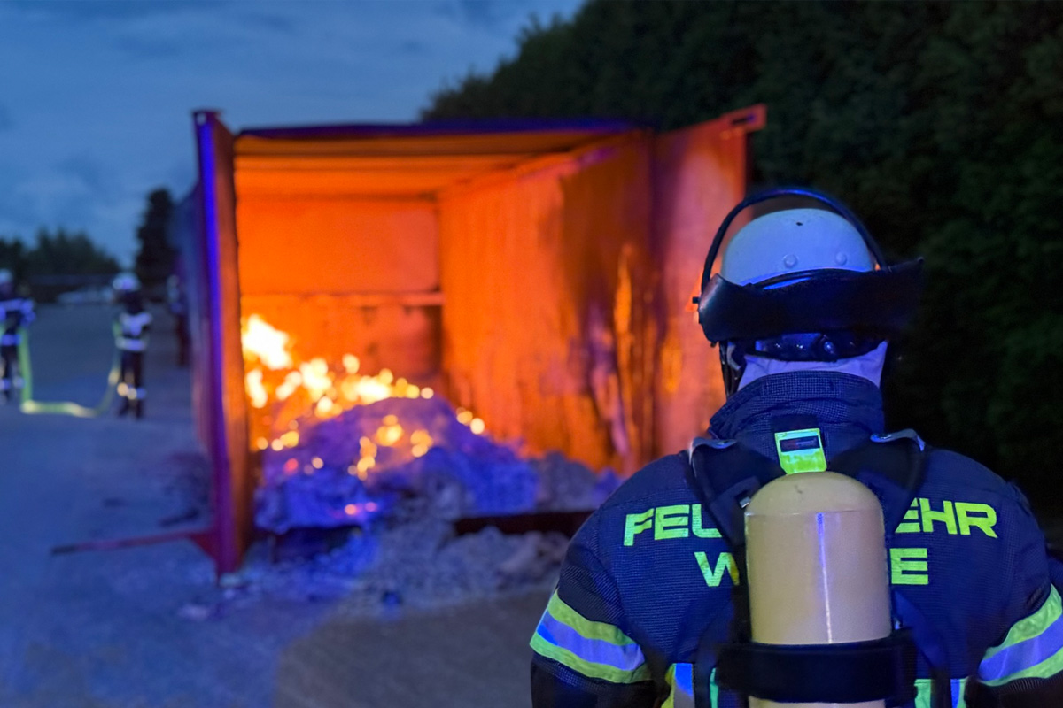 Wie lange der Container schon brannte ist unklar. (Bildquelle: Freiwillige Feuerwehr Werne)