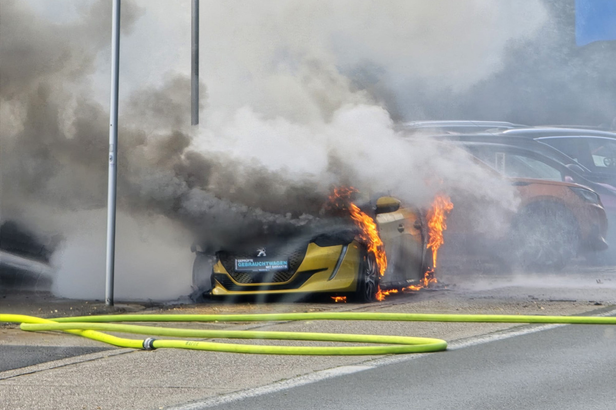 Am Donnerstagvormittag, dem 3. Juli 2025, gerieten zwei Pkw auf dem Parkplatz eines Autohauses in Werne in Brand. Die Feuerwehr konnte ein Übergreifen auf weitere Fahrzeuge verhindern. Verletzt wurde niemand.