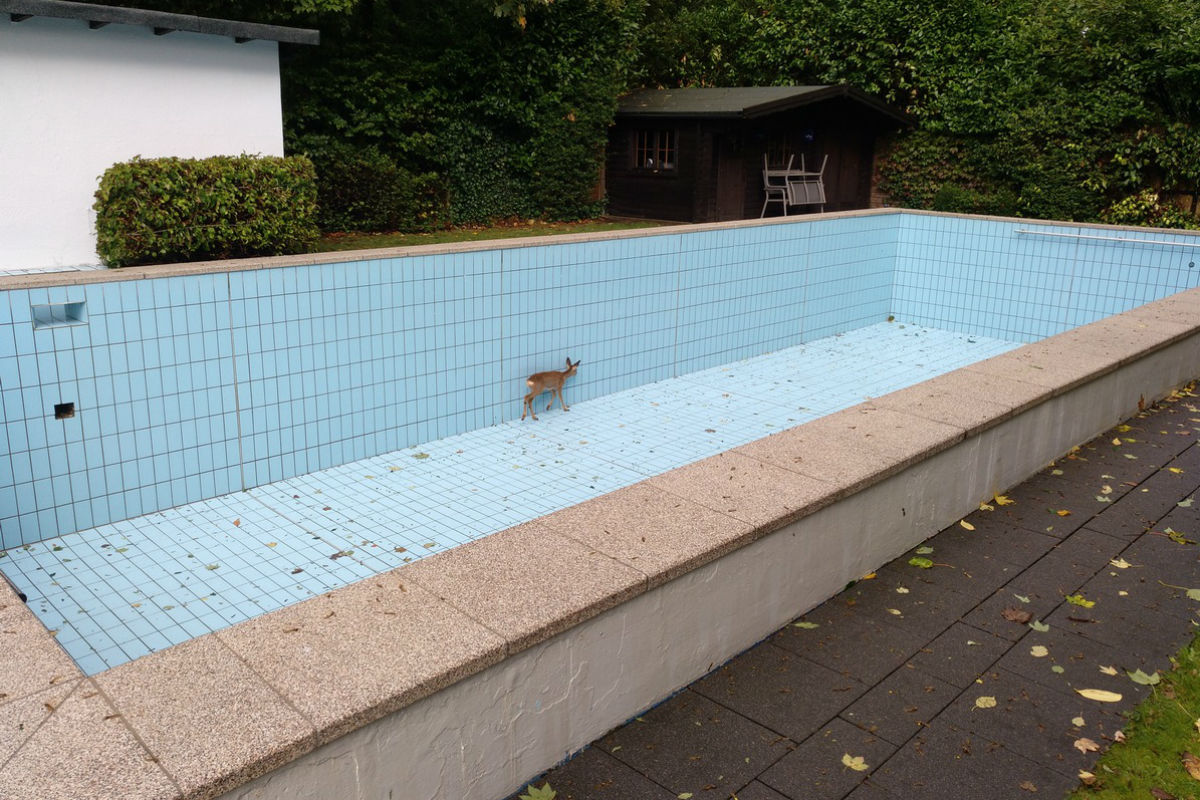 In der Straße "Im Kortenberg" wurde durch einen Anrufer ein Reh gemeldet, welches in einem leer stehenden Außenschwimmbecken gefangen war. Bei Eintreffen der fünf ehrenamtlichen Kräfte versuchte das Tier sich immer wieder aus eigener Kraft aus dem Pool zu befreien, was allerdings nicht gelang. Durch das Ordnungsamt wurde ein Jagdpächter und durch die Kreisleitstelle wurde parallel ein Tierarzt informiert.