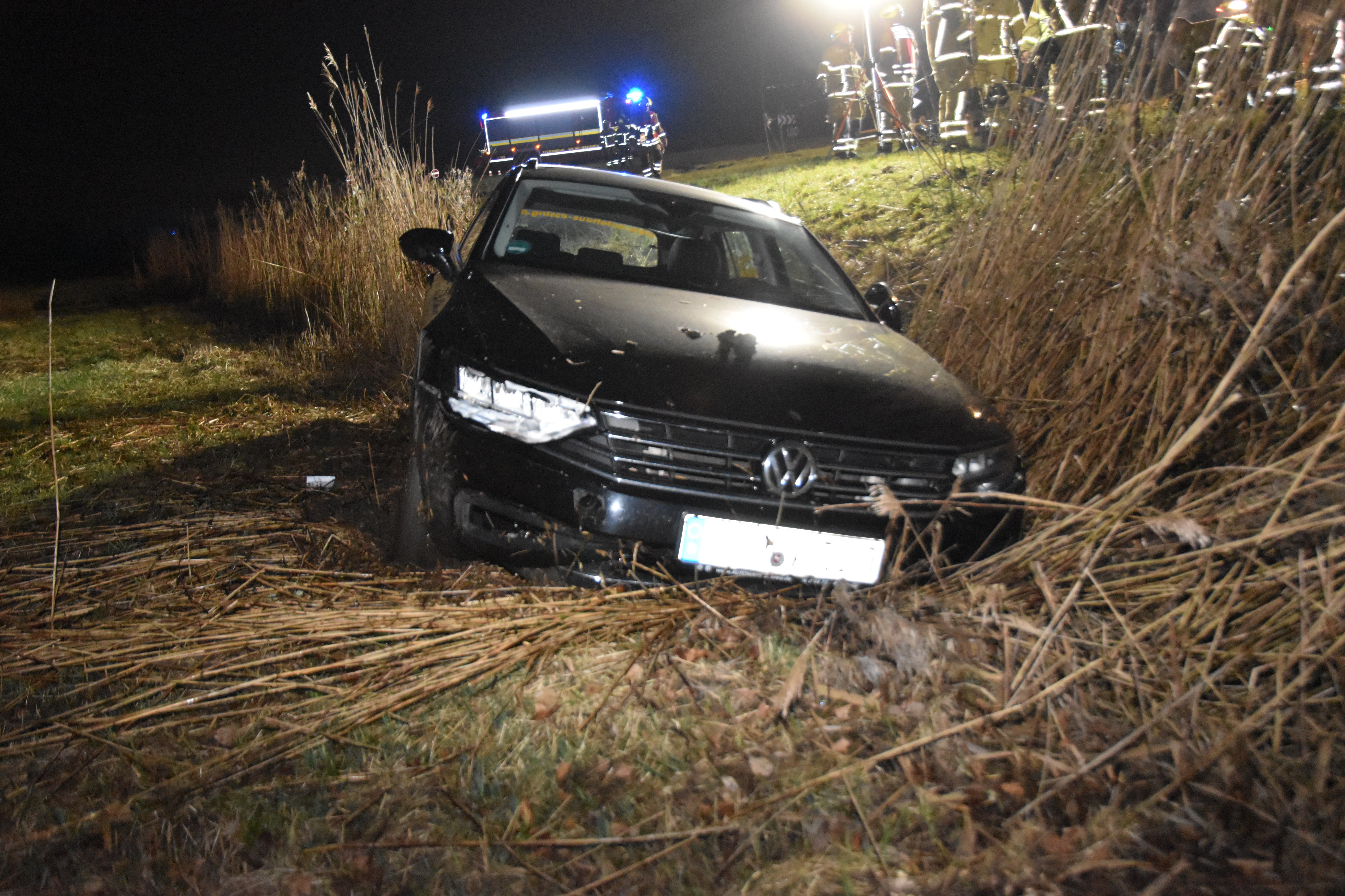 Aus bislang ungeklärter Ursache fährt das Fahrzeug geradeaus über die dortige Mittelinsel, kommt nach rechts von der Fahrbahn ab und kommt nach ca. 80 m in einem Straßengraben zum Stillstand. Beim Eintreffen der Ersthelfer ist der Fahrzeugführer nicht ansprechbar und muss vor Ort durch den Rettungsdienst und anschließend im Krankenhaus behandelt werden.