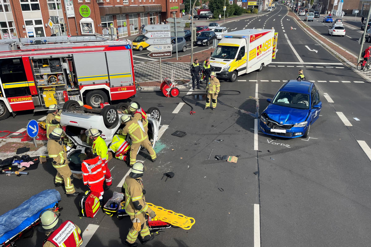 Der 78-jährige Wilhelmshavener Autofahrer beabsichtigt, den Kreuzungsbereich in Richtung Friedrich-Paffrath-Straße zu queren, während ein 35-jähriger mit seinem PKW zeitgleich den Fahrtweg auf der Bismarckstraße kreuzte. Es kommt zu einer Kollision der beiden Fahrzeuge, wobei sich der Peugeot des 78-Jährigen überschlägt und auf dem Dach zum Stillstand kommt.