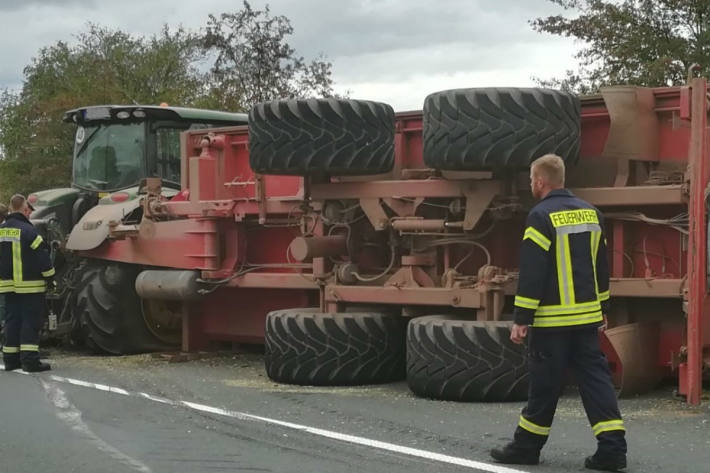 Zu Verkehrsbehinderungen kommt es gegenwärtig auf der L3080 im Landkreis Nordhausen. Ein Traktorfahrer fuhr gegen 14 Uhr aus Richtung Wipperdorf auf die Landstraße in Richtung Werther, als sein Traktor-Anhänger-Gespann umkippte. Die Fahrbahn ist derzeit halbseitig gesperrt.