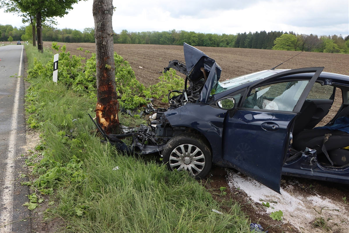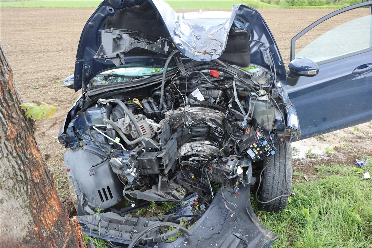 Auf der Kreisstraße 13 bei Wipperfürth-Oberröttenscheid ist am Morgen (26. Mai) ein 28-Jähriger mit seinem Auto frontal vor einen Baum gefahren; er zog sich schwere Verletzungen zu.