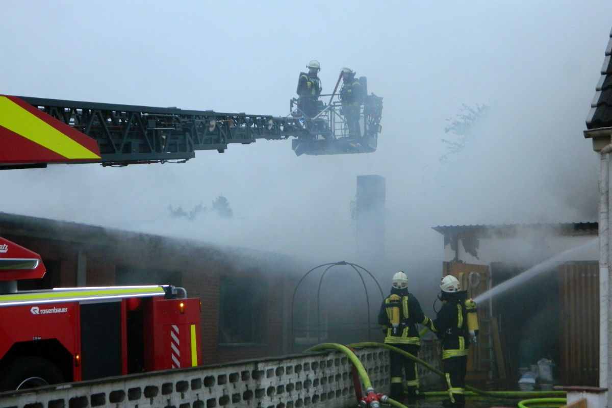 Aufgrund der Schadenslage wurden weitere Einsatzkräfte alarmiert, so dass ca. 120 Feuerwehrleute vor Ort waren. Im Laufe des Löschangriffs stellte sich heraus, dass ca. 18.000 Liter Heizöl in diesem Gebäude gelagert wurden, wovon ein Teil in Flammen aufging. Durch die hohe Rauchentwicklung wurden Anwohner über Radio aufgefordert, Fenster und Türen geschlossen zu halten. Bei der weiteren Erkundung im Gebäude wurde dann eine leblose Person aufgefunden.